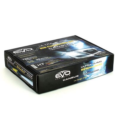 HID Kit EVO with 35W Slim Ballast available in H1, H4, H7 and H11 bulbs and 4.300K, 6.500K and 8.000K light intensity. All kits come with 2 reliable error cancellers.