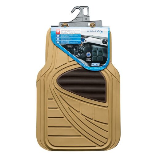Set of 4 car mats made of high quality odourless and durable rubber with black heel pad. The mats are universal and can be trimmed down to size. They come with 2 front mats and 2 rear mats. The mats have underside grips to stop them from moving around. Easy to clean with a wipe down or high pressure hose. Available in black, beige and grey.